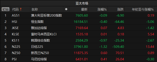 上证报中国证券网讯 Choice数据显示,4月17日,亚太主要股市收盘涨跌互现。澳大利亚标普200指数收跌0.09%,报7605.6点,连续5个交易日下跌;韩国综合指数收跌0.97%,股指配资实盘利息多少报2584.29点,连续4个交易日下跌;日经225指数收盘下跌1.32%,报37961.8点;新西兰NZ50指数上涨0.6%,报11875.35点,终结四连跌。