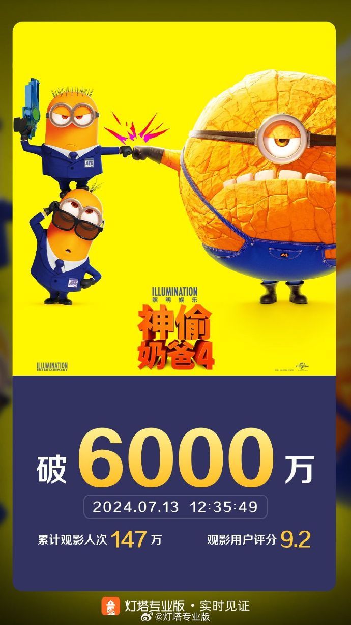 影片《神偷奶爸4》票房突破6000万。